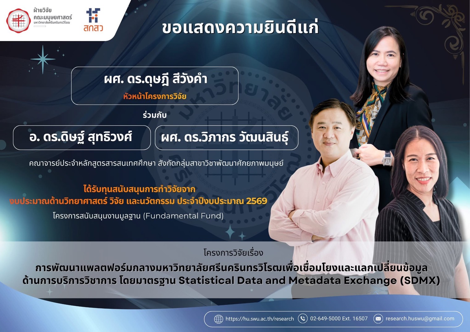 โครงการวิจัยที่ 1 "การพัฒนาแพลตฟอร์มกลางมหาวิทยาลัยศรีนครินทรวิโรฒเพื่อเชื่อมโยงและแลกเปลี่ยนข้อมูลด้านการบริการวิชาการ" ...