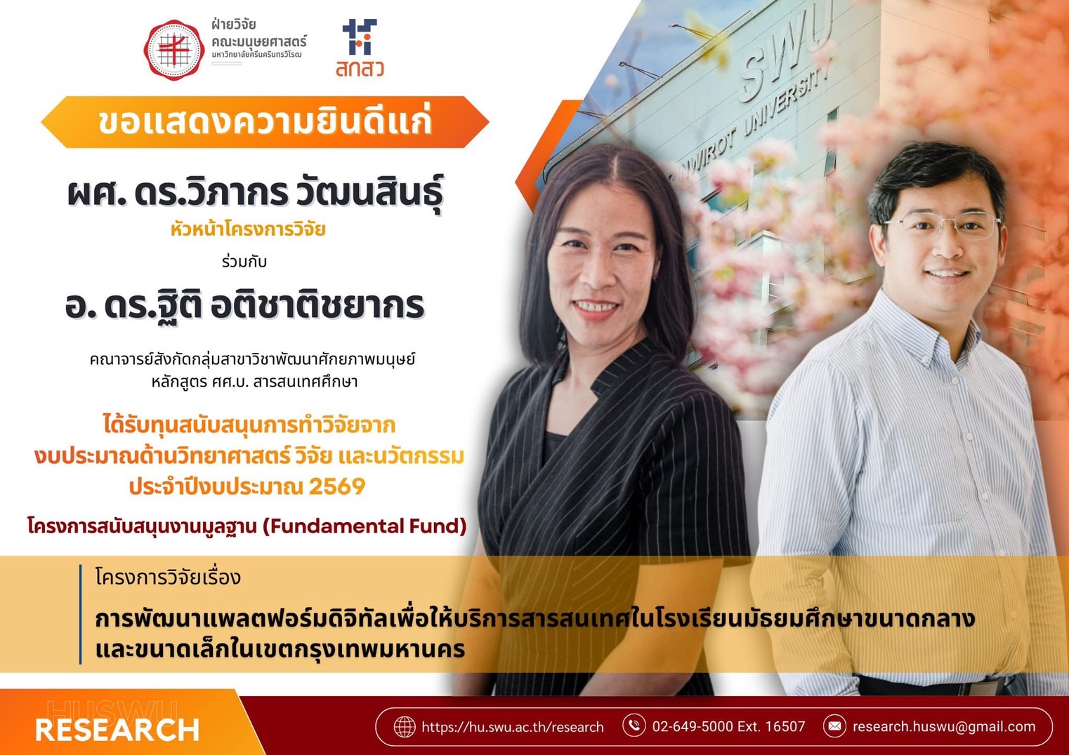 เมื่อวันที่ 22 สิงหาคม พ.ศ. 2568 ได้จัดงานสถาปนาคณะมนุษยศาสตร์ มหาวิทยาลัยศรีนครินทรวิโรฒ ครบรอบ 50 ปี ...